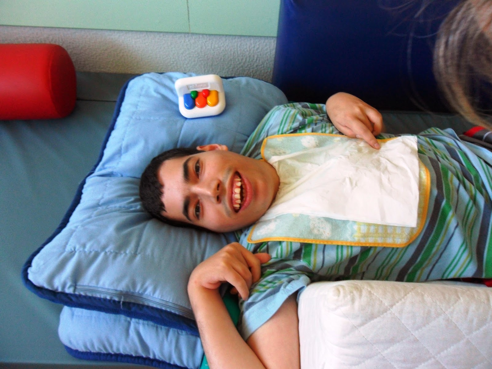 É de salientar ainda que todos os dias é necessário levantar o Simão da cama e colocá-lo na cadeira de rodas e vice versa várias vezes ao dia com o auxílio de um elevador. Para além do mais, quando o Simão suja a fralda, tem que ser lavado com sabão azul e água morna sob recomendação do médico.