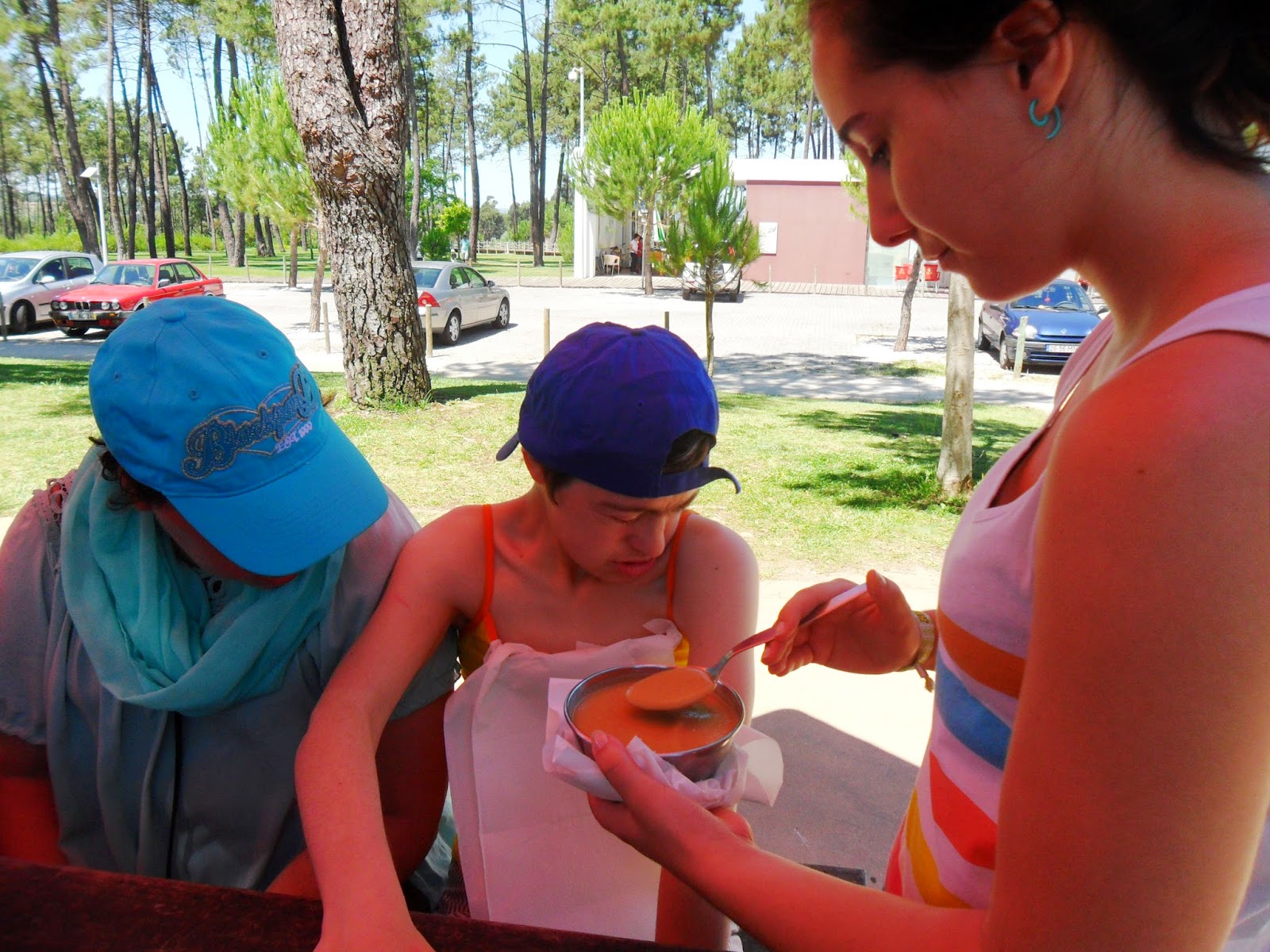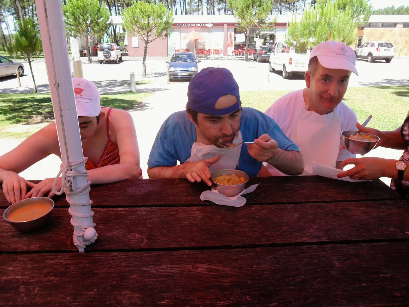A comida é posteriormente dada à boca dos utentes Tiago Carrão e Simão, sendo que os demais comem pela sua própria mão, sempre com supervisão das responsáveis do CAO 2. Importa referir que o Simão e o Tiago, seja qual for a refeição, precisam sempre que lhes seja dado tudo à boca, ou seja, necessitam de uma pessoa que esteja somente destinada a alimentá-los, tarefa que chega a demorar mais ou menos 1 hora.